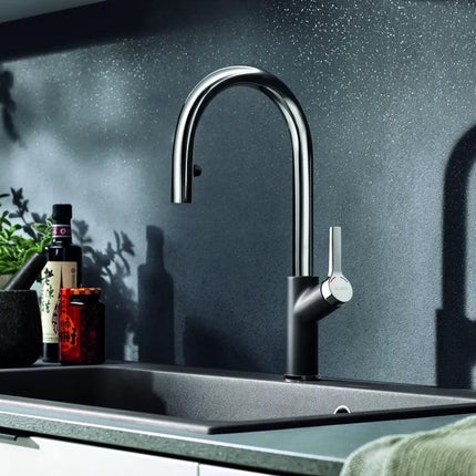 Bateria do zlewozmywaka kuchenna Blanco Carena-S Vario to nie tylko funkcjonalność – to też wyraz Twojego wyszukanego gustu. Wulkaniczny szary odcień wzbogaca każdy styl kuchni, od nowoczesnego po klasyczny, tworząc atmosferę, gdzie gotowanie staje się przyjemnością inspirowaną estetyką. Dzięki precyzyjnemu wykonaniu, każdorazowe użycie kranu kuchennego z wyciąganą wylewką gwarantuje płynność działania i wyjątkową wygodę.
