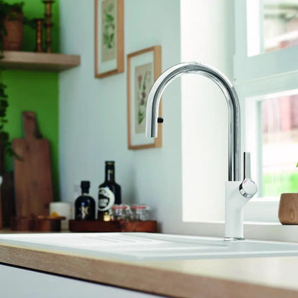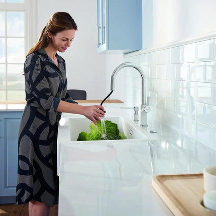 Wszechstronność z wyciąganą wylewką: Odkryj komfort, jaki daje funkcjonalność wyciąganej wylewki. Zamieniaj łatwo strumień z intensywnego na delikatny – idealne do napełniania wysokich naczyń lub precyzyjnego płukania owoców i warzyw.