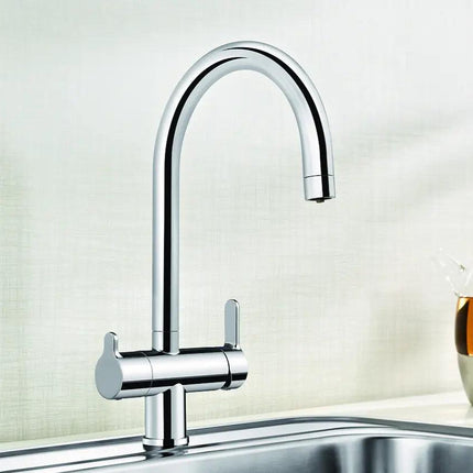 Podwójna dźwignia – intuicyjne sterowanie ciepłą i zimną wodą po prawej stronie oraz osobna dźwignia do wody filtrowanej po lewej pozwala na bezpośredni dostęp do krystalicznie czystej wody pitnej.