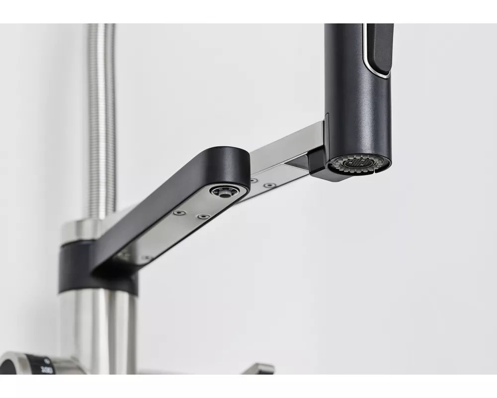 Styl a Design: Dostępna w wykończeniach czarny mat, powłoka PVD steel oraz Satin GOLD – ta bateria stanie się ozdobą Twojej kuchni.