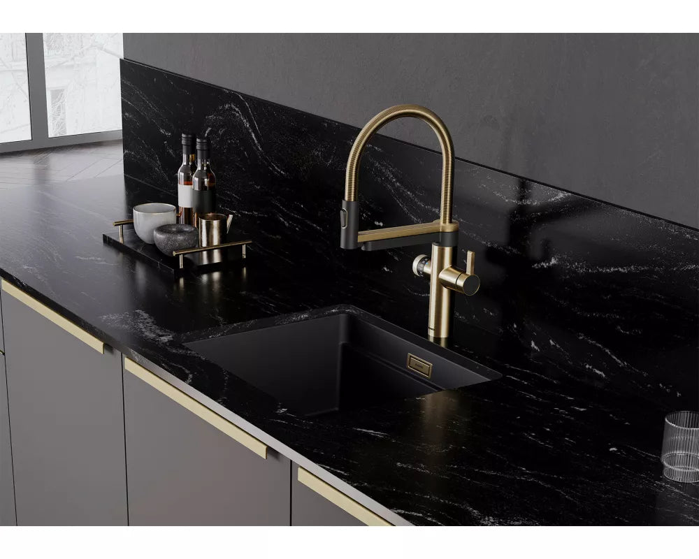 Wyobraź sobie swoją kuchnię jako miejsce, gdzie każdy element łączy elegancję z funkcjonalnością. Bateria kuchenne BLANCO EVOL-S Pro drink.filter w zjawiskowym wykończeniu Satin Gold to nie tylko urządzenie – to symbol luksusu i nowoczesności, który przekształci codzienne gotowanie w prawdziwą przyjemność.
