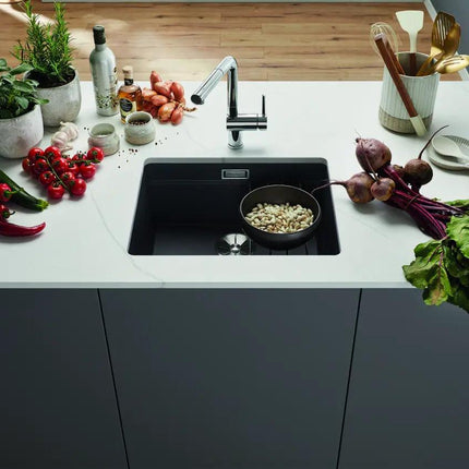 Produkowany w Niemczech, granitowy zlew kuchenny BLANCO ETAGON 500-U to nie tylko estetyka, ale przede wszystkim precyzja wykonania i trwałość, które spełnią oczekiwania nawet najbardziej wymagających użytkowników. Ten zlewozmywak kuchenny granitowy jednokomorowy stanie się niezawodnym partnerem w Twojej kuchni, wzbogacając każdą chwilę spędzoną przy przygotowywaniu jedzenia.
