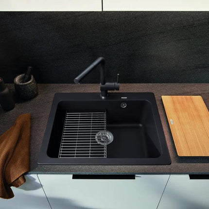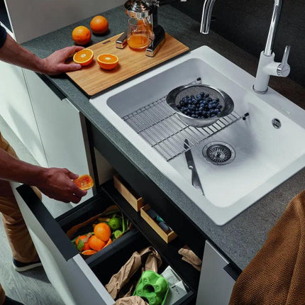 Kompaktowe wymiary zlewu (61,5 x 51 cm), umożliwiają perfekcyjne dopasowanie do szafek o szerokości 60 cm, co czyni go idealnym zarówno do przestronnych, jak i bardziej kameralnych kuchni.