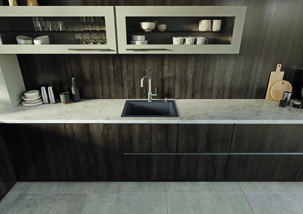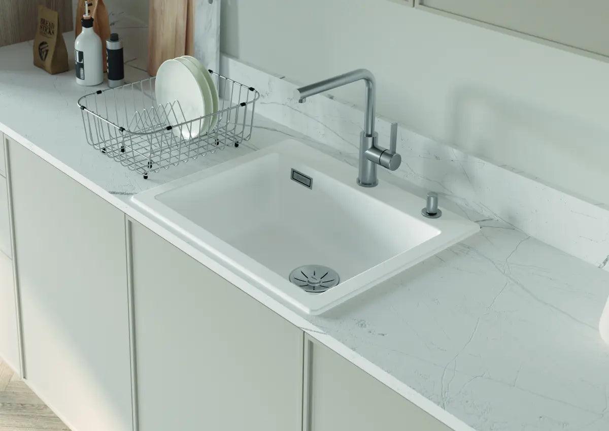 Zlewozmywak został zaprojektowany z myślą o montażu w szafkach o szerokości 60 cm, co czyni go uniwersalnym wyborem do różnorodnych kuchennych aranżacji, zapewniając przy tym luksus i praktyczność w codziennym użytkowaniu.