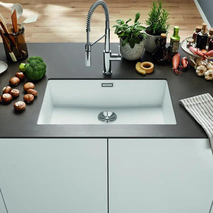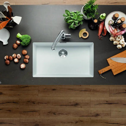 Zlewozmywak kuchenny jednokomorowy granitowy BLANCO SUBLINE 700-U w białym odcieniu – kwintesencja luksusu i funkcjonalności