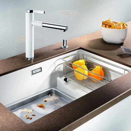 Ten kosz do zlewu łączy w sobie nieskazitelną odporność na wilgoć z minimalistycznym, eleganckim designem, który podkreśli wyjątkowy charakter każdej kuchni. Wykonany ze stali szlachetnej najwyższej jakości, niweluje problem mokrych plam i bałaganu, zapewniając optymalną przestrzeń do suszenia naczyń, sztućców czy nawet świeżych produktów, takich jak owoce czy warzywa.