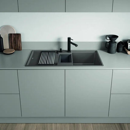 Automatyczny korek z systemem InFino umożliwia sterowanie odpływem bez schylania się i dotykania korka – prostota, która nadaje codziennej rutynie niespotykany komfort. Odwracalny montaż zlewu pozwala na idealne dopasowanie do układu Twojej kuchni, co podnosi komfort użytkowania.