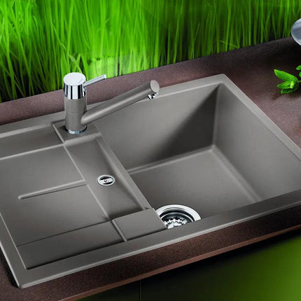 Zlew granitowy BLANCO METRA 45 S Compact powstał z najwyższej jakości kompozytu – połączenia naturalnego granitu z ceramiką i trwałymi barwnikami. Dzięki temu zlewozmywak silgranitowy jest nie tylko fenomenalnie wytrzymały, ale również higieniczny i neutralny dla kontaktu z żywnością. Możesz być pewna, że będzie wyglądał jak nowy nawet po intensywnym użytkowaniu, a jego powierzchnia będzie łatwa do utrzymania w czystości.