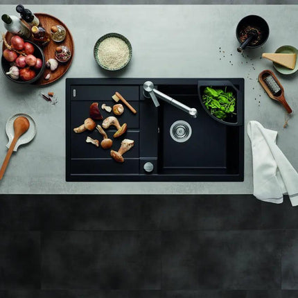 Zlewozmywak do kuchni BLANCO METRA 5 S charakteryzuje się głęboką komorą, która bez wysiłku pomieści największe garnki i patelnie. Jego pojemność i ergonomiczny kształt sprawiają, że przygotowywanie posiłków czy zmywanie nabiera zupełnie nowego wymiaru – wygoda i swoboda ruchów stają się oczywistością. Dodatkowy ociekacz, subtelnie wkomponowany w całość, zyskuje rolę praktycznej przestrzeni, gdzie możesz suszyć naczynia lub rozłożyć świeże składniki, nie tracąc ani centymetra blatu.