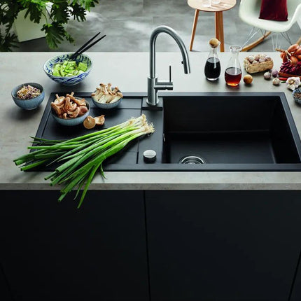 Jednokomorowy charakter tego zlewozmywaka granitowego oferuje ogromną powierzchnię roboczą – głęboka komora o niemal idealnych wymiarach zapewnia komfort przygotowywania posiłków, zmywania oraz rozmrażania produktów. Dodatkowo odwracalna konstrukcja pozwala perfekcyjnie dostosować układ zlewu do konkretnej aranżacji kuchni, dzięki czemu zlew stanowi spójną i harmonijną część przestrzeni.