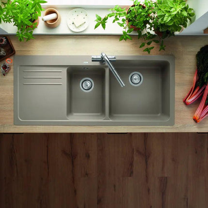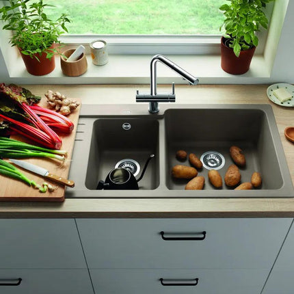 Zlewozmywak granitowy dwukomorowy BLANCO wykonany jest z innowacyjnego kompozytu SILGRANIT®, w którym naturalny granit łączy się z ceramiką, akrylem i pigmentami, tworząc powierzchnię niezwykle odporną na codzienne uszkodzenia. Oparzenia wrzątkiem, zarysowania czy uderzenia nie są mu straszne – to gwarancja długowieczności i nienagannego wyglądu przez lata.